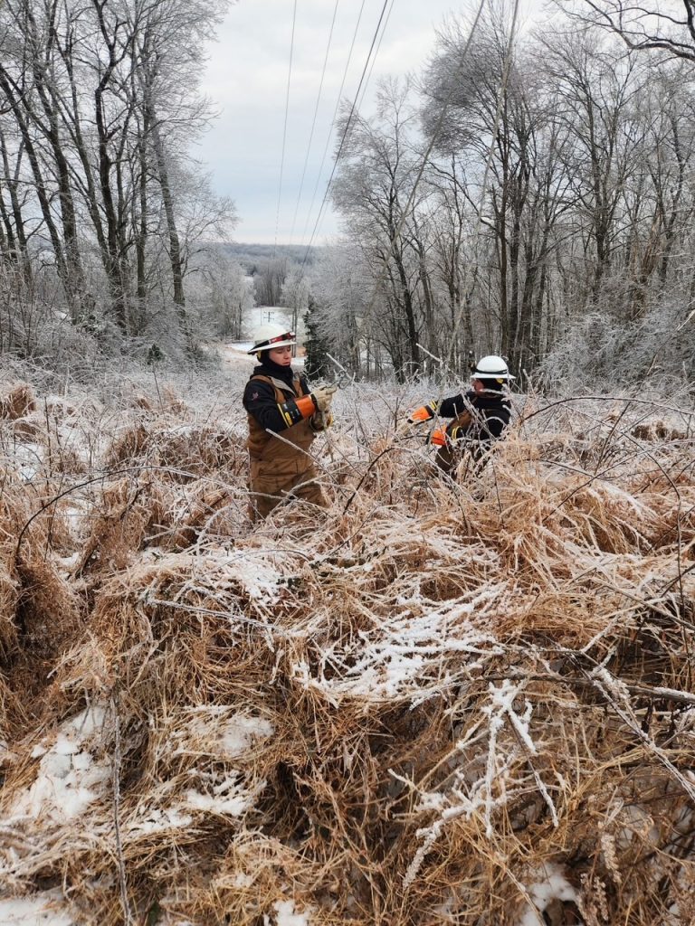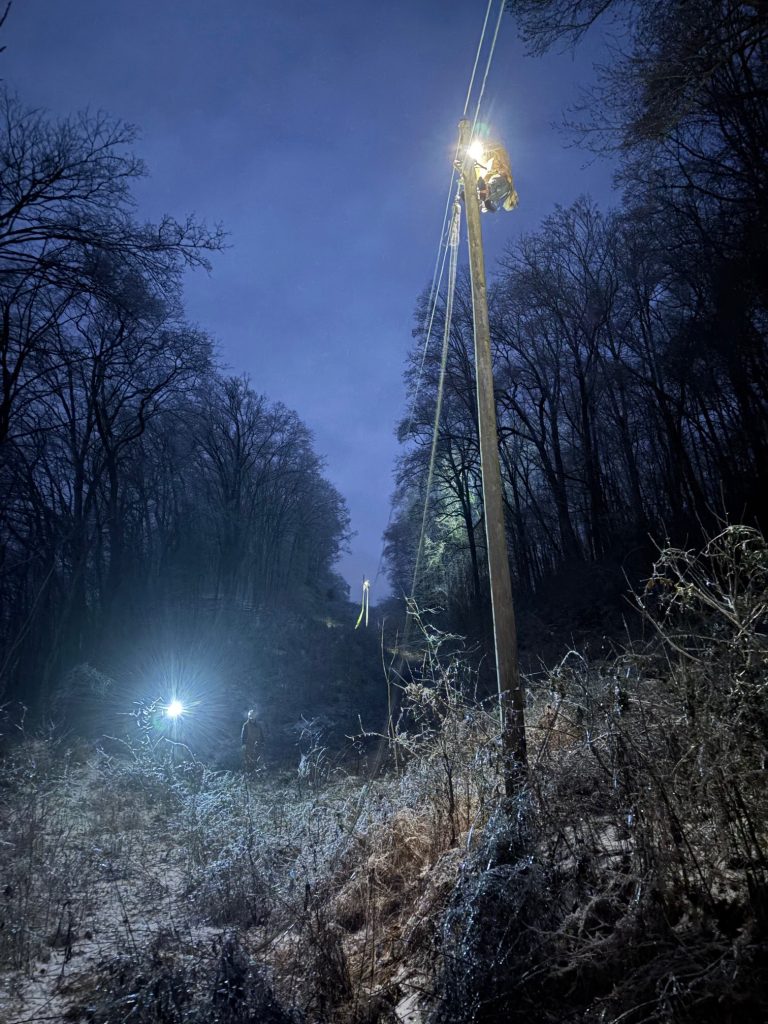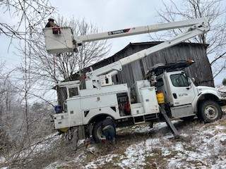 Conditions remain difficult. Road conditions are still hazardous, the ground is muddy, ice is present in many areas, and access to damaged sections of line is challenging. Yesterday, our trucks became stuck in the mud and we were able to get them out thanks to local farmers who stepped in with tractors and farm equipment. We are grateful for that help and for the spirit of neighbors helping neighbors that makes communities stronger.