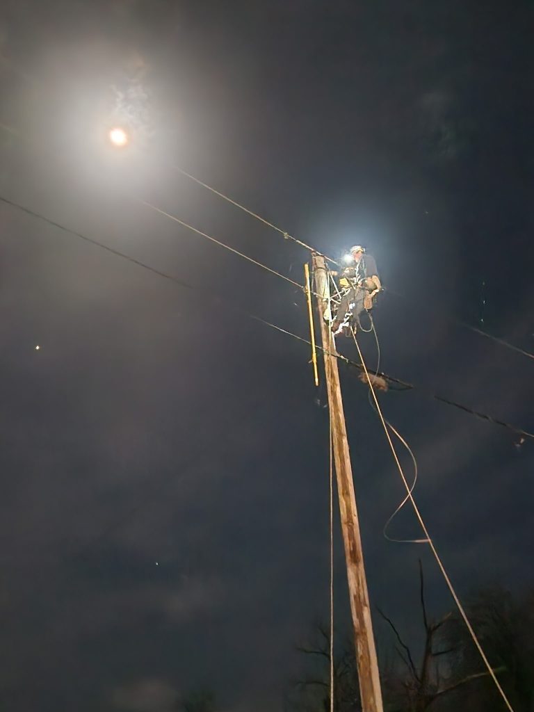 Our linemen have worked extremely hard all day and we are very proud of them. Thank you for your patience as we continue restoring power as safely and quickly as conditions allow.